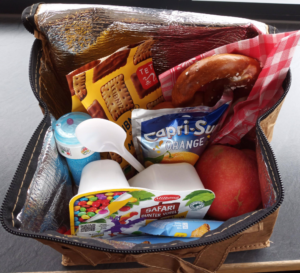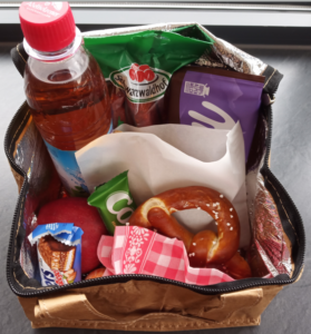 Getränk, Breze, Apfel, Keks, Joghurt und eine kleine Überaschung